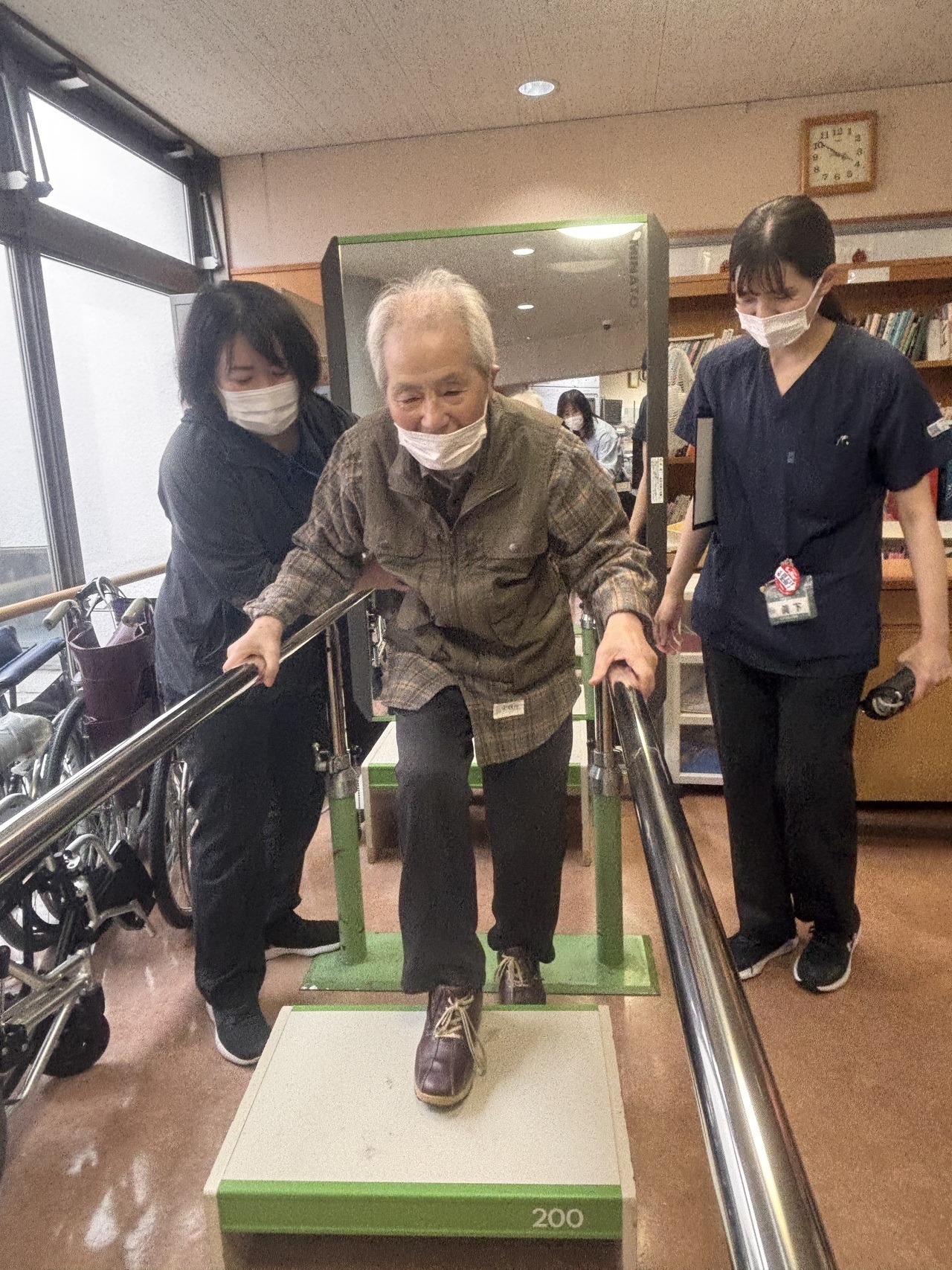 週三回、月・水・土と博愛会病院から理学療法士、作業療法士の先生が来てくださっています。ご自宅での生活動作を踏まえながらお一人に付き30分程しっかりと見てくだいます。ご家族様からもご本人様からも大変ご講評頂いています!!